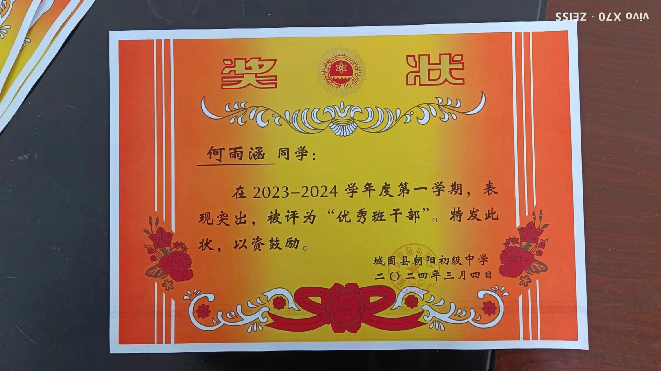 2024年3月7日 获得“优秀班干部(牛马)”奖状