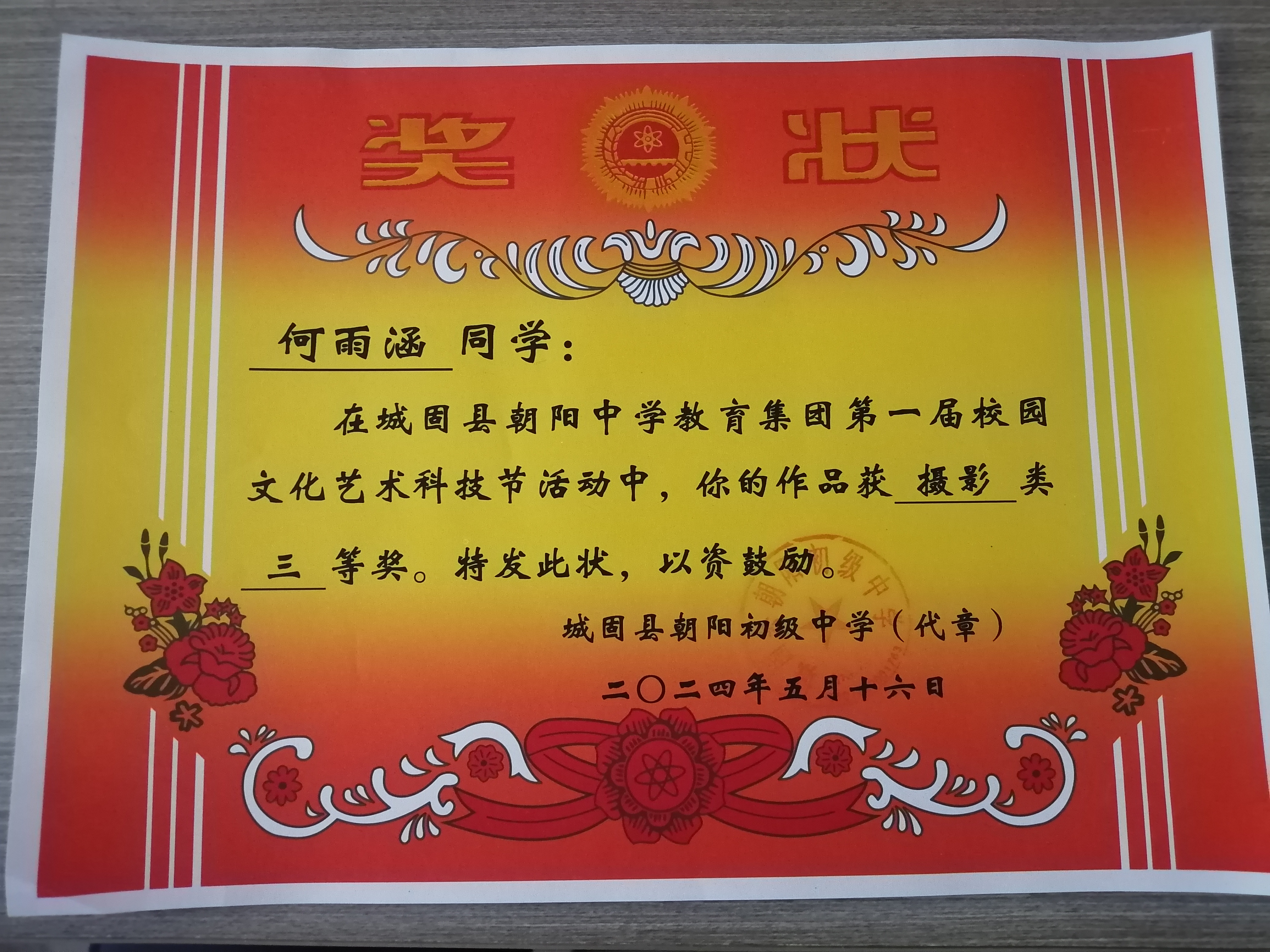 2024年5月28日 获得了艺术节“摄影类”三等奖