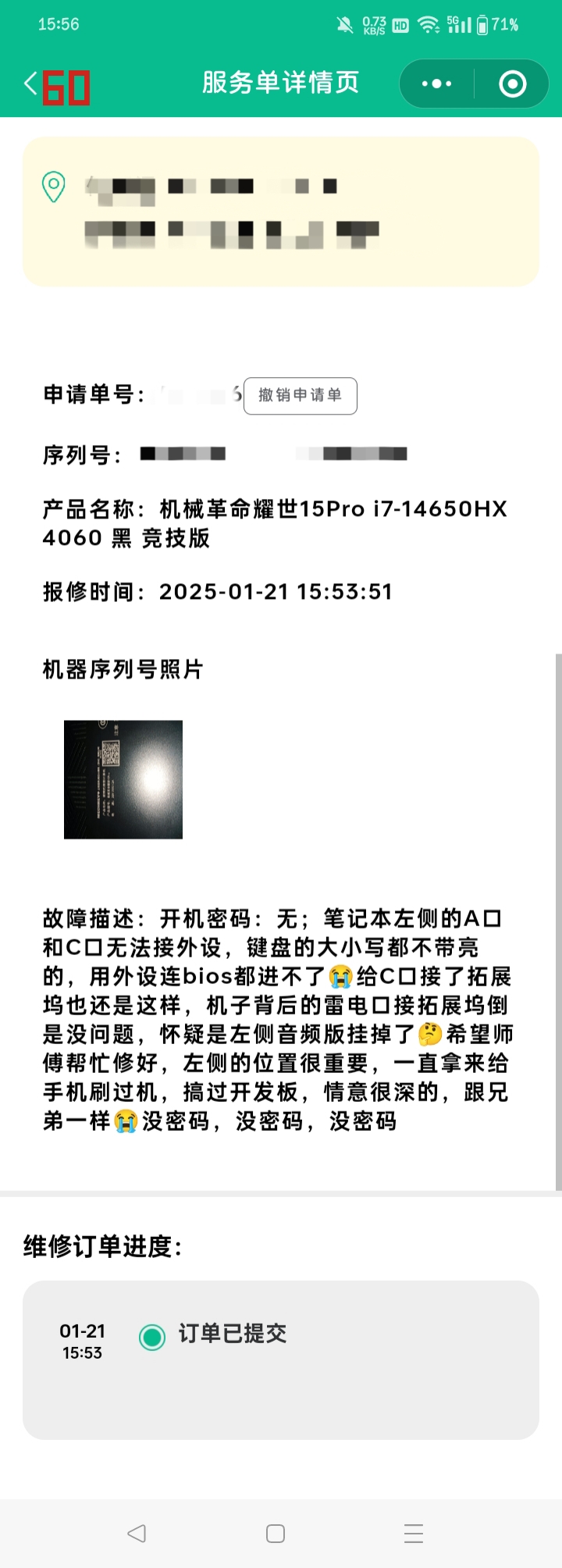 2025年1月18日 我的鸡哥左侧USB口用不成,于是走售后换了小板就修好了