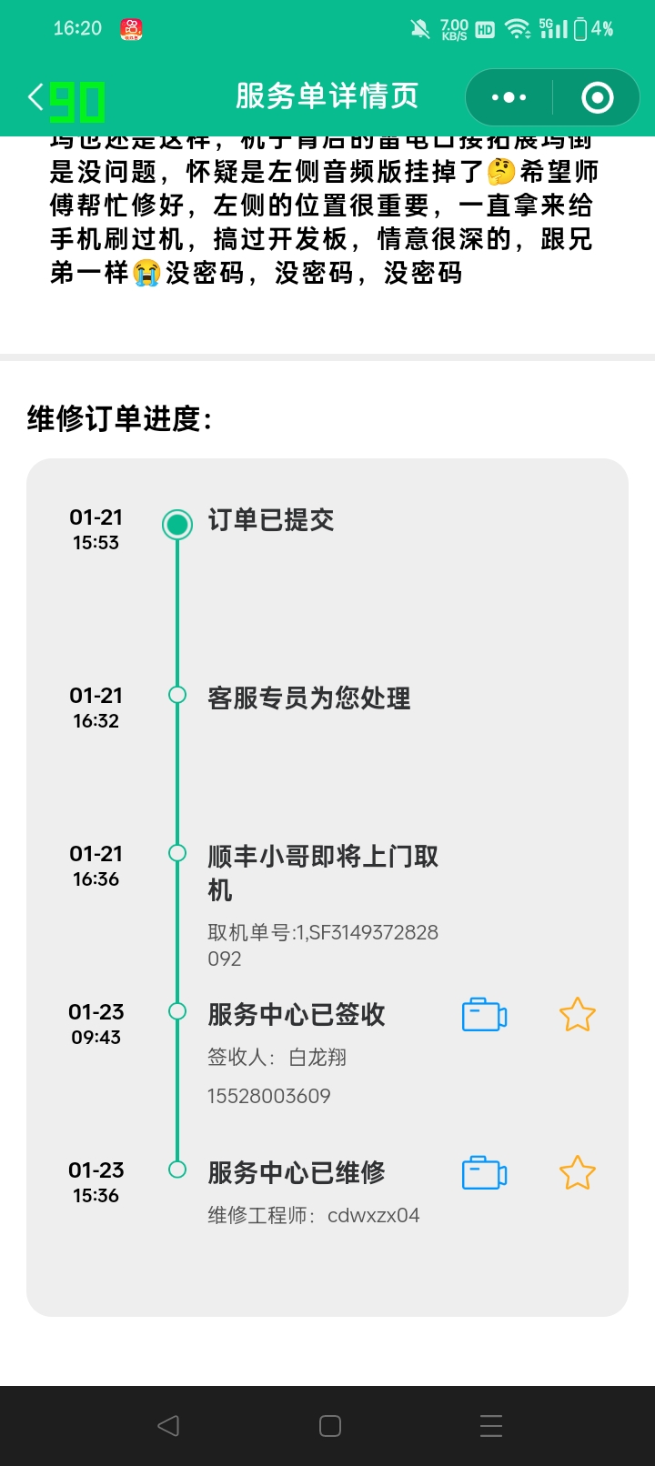 21号寄出---23号维修---25号到货 -