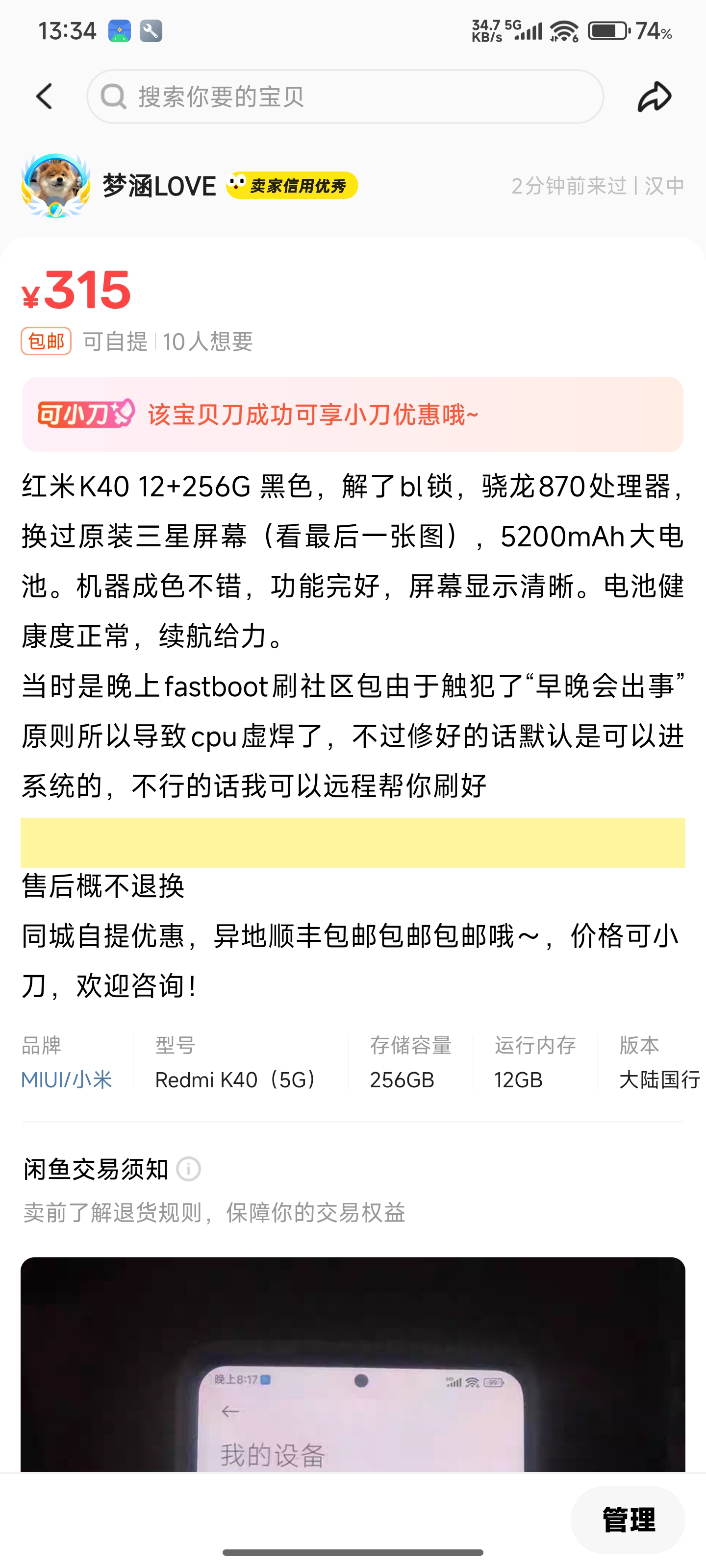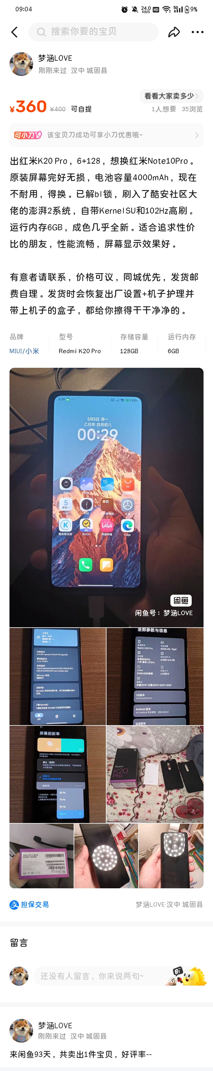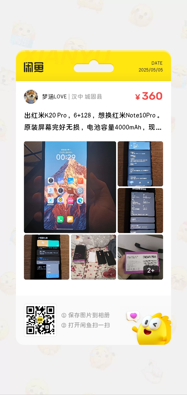 2025年5月5日 由于 Redmi K20 Pro 玩腻了想买个新手机于是就挂闲鱼上面了