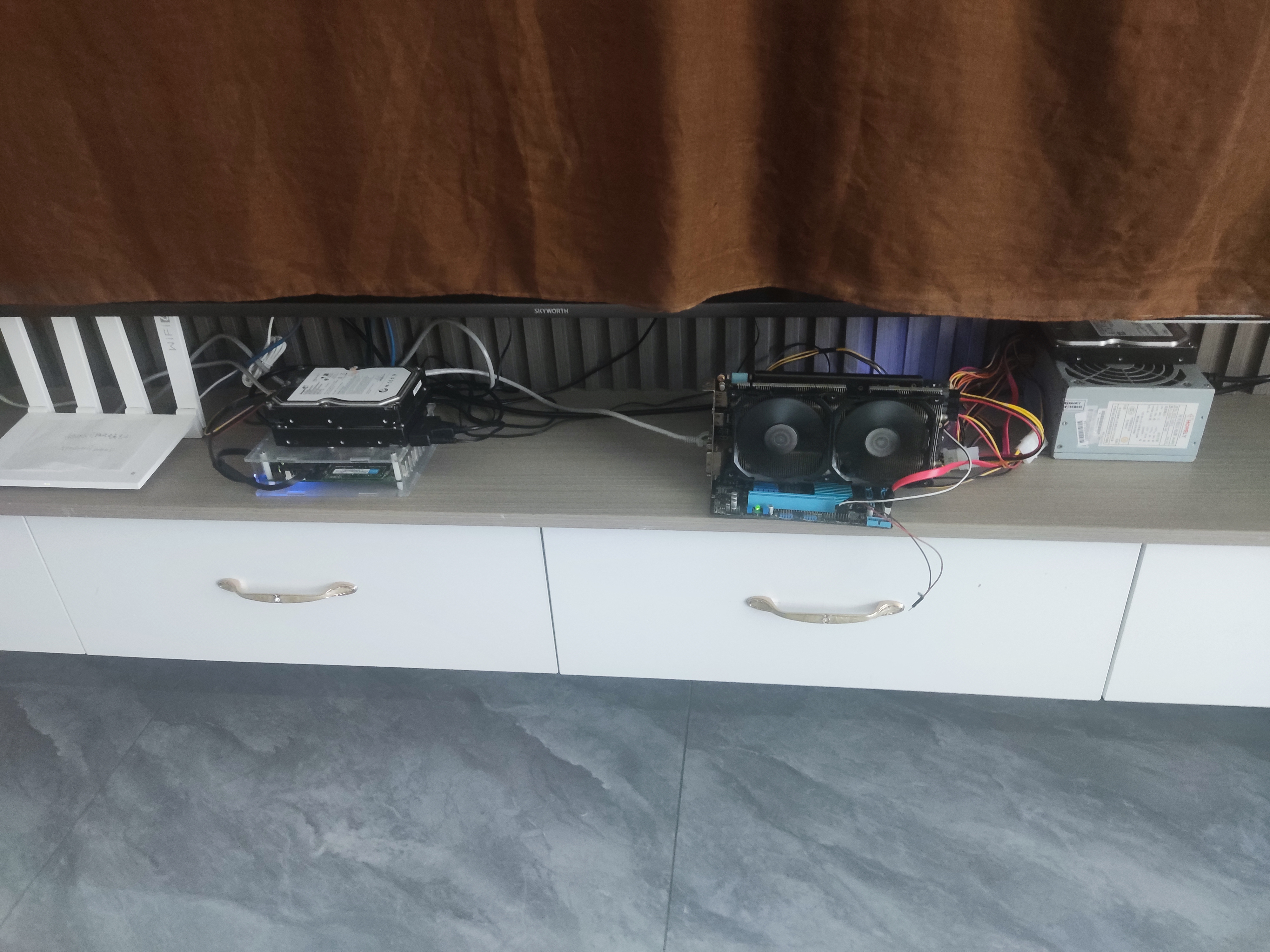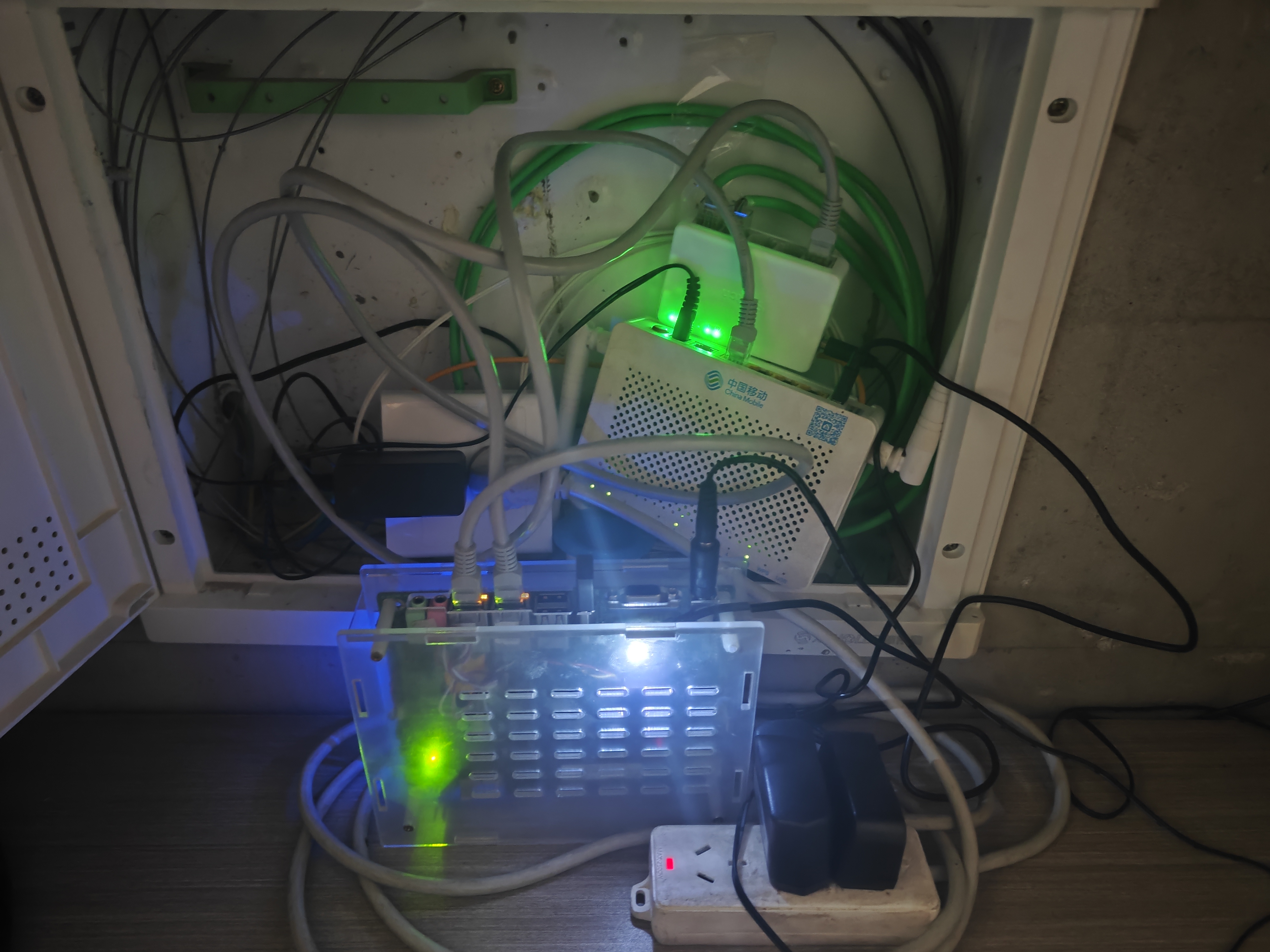 2025年7月22日 把放在客厅电视下面的工程机和NAS(小主机)前者迁到弱电箱后者迁到闲置卧室