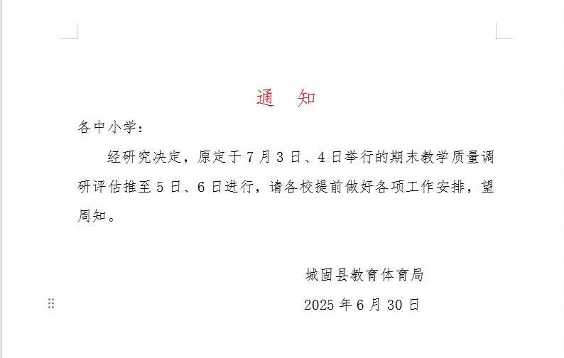 2025年6月30日 期末考试推迟