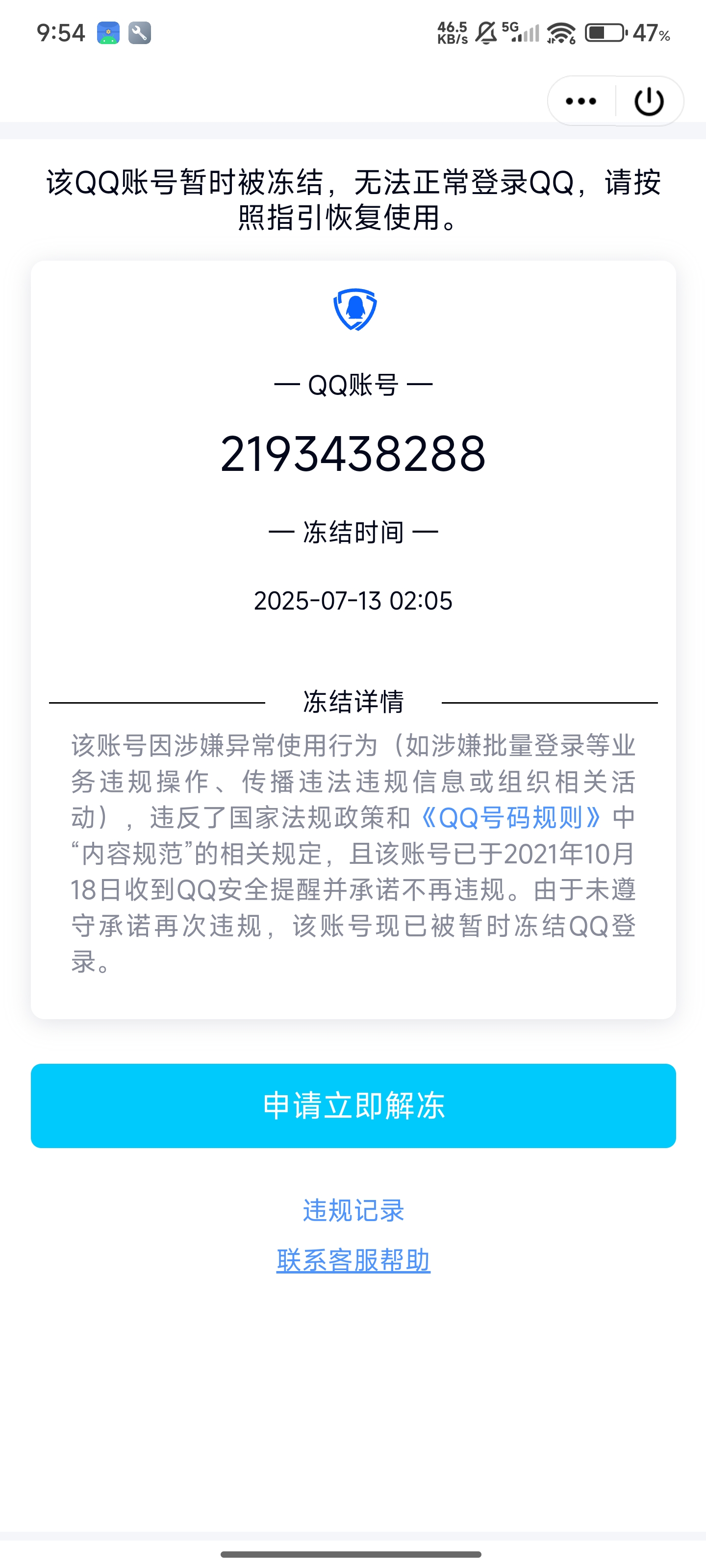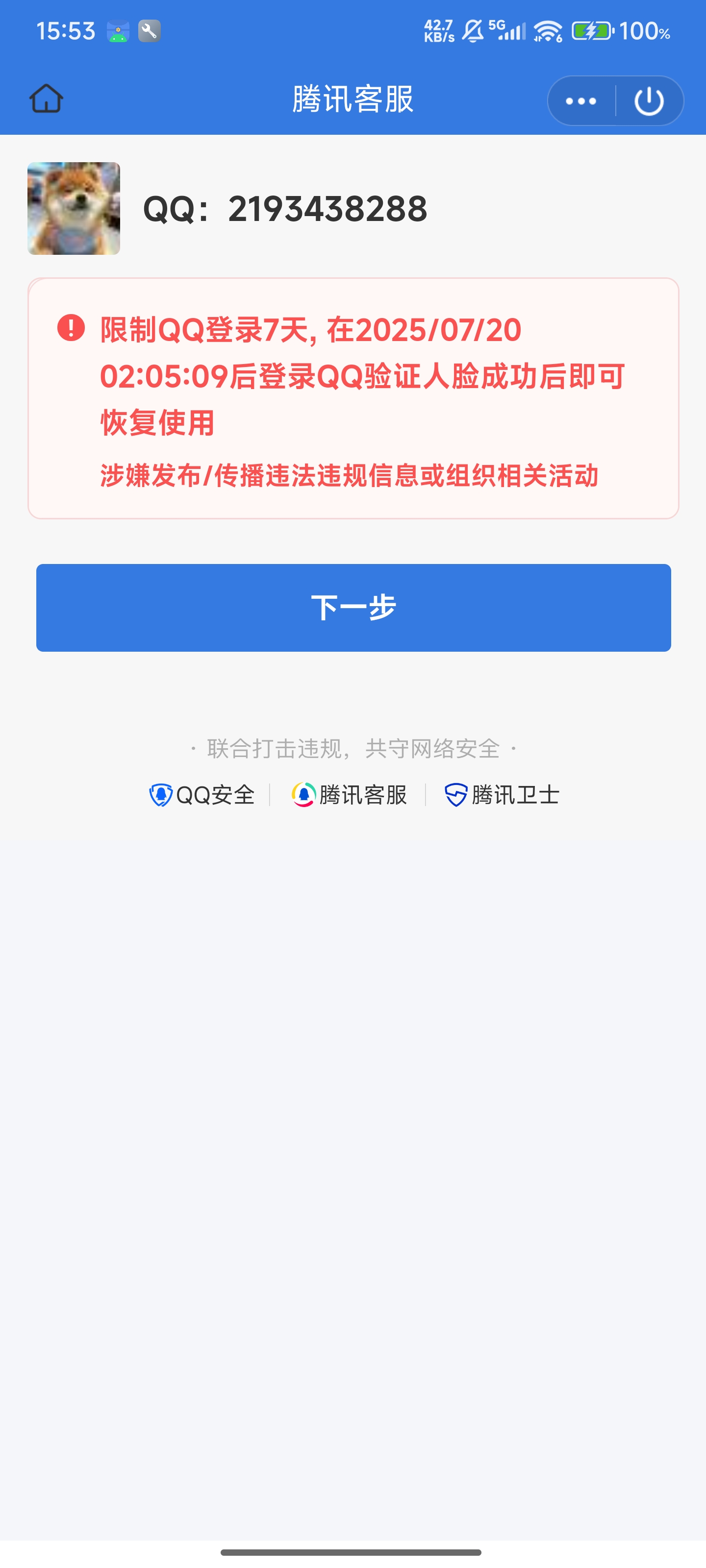 2025年7月20日 QQ号解封