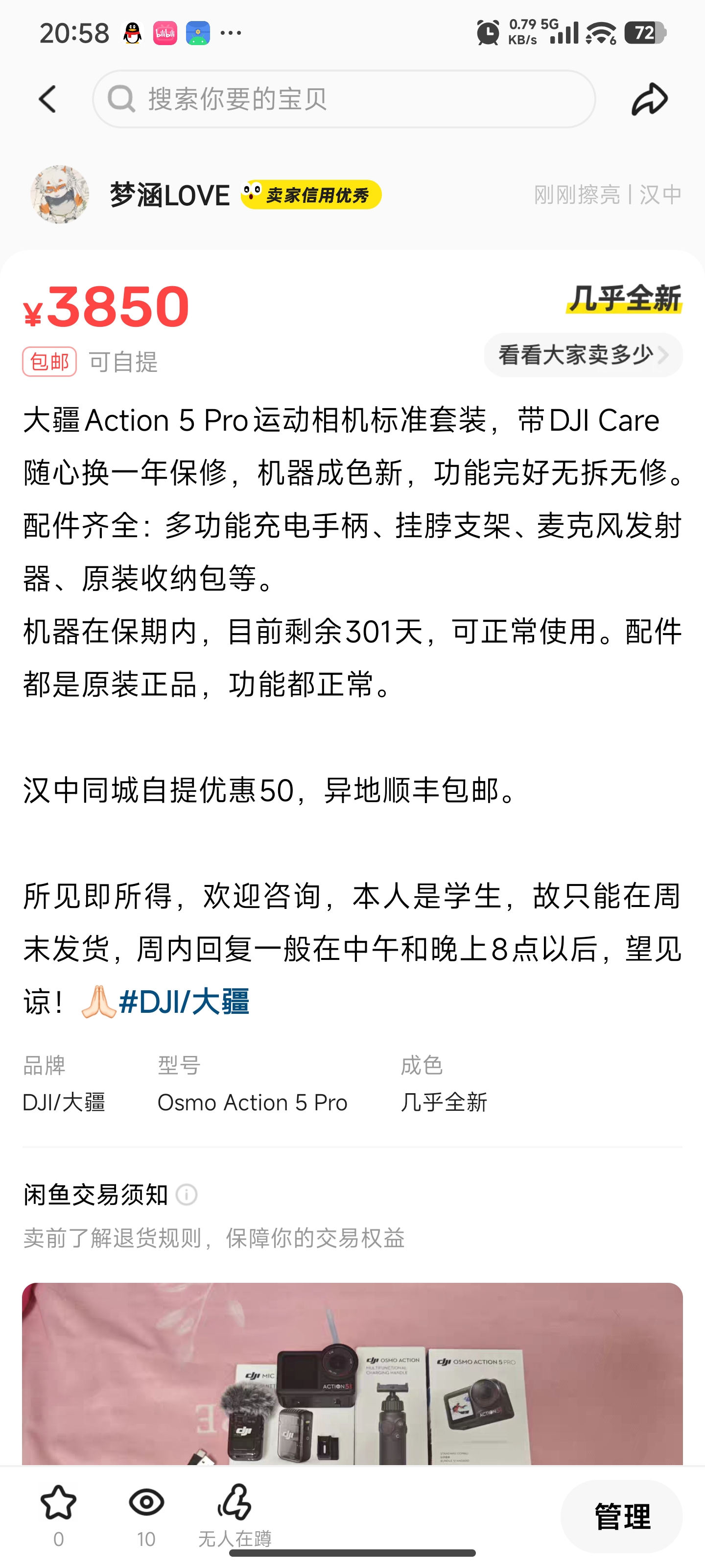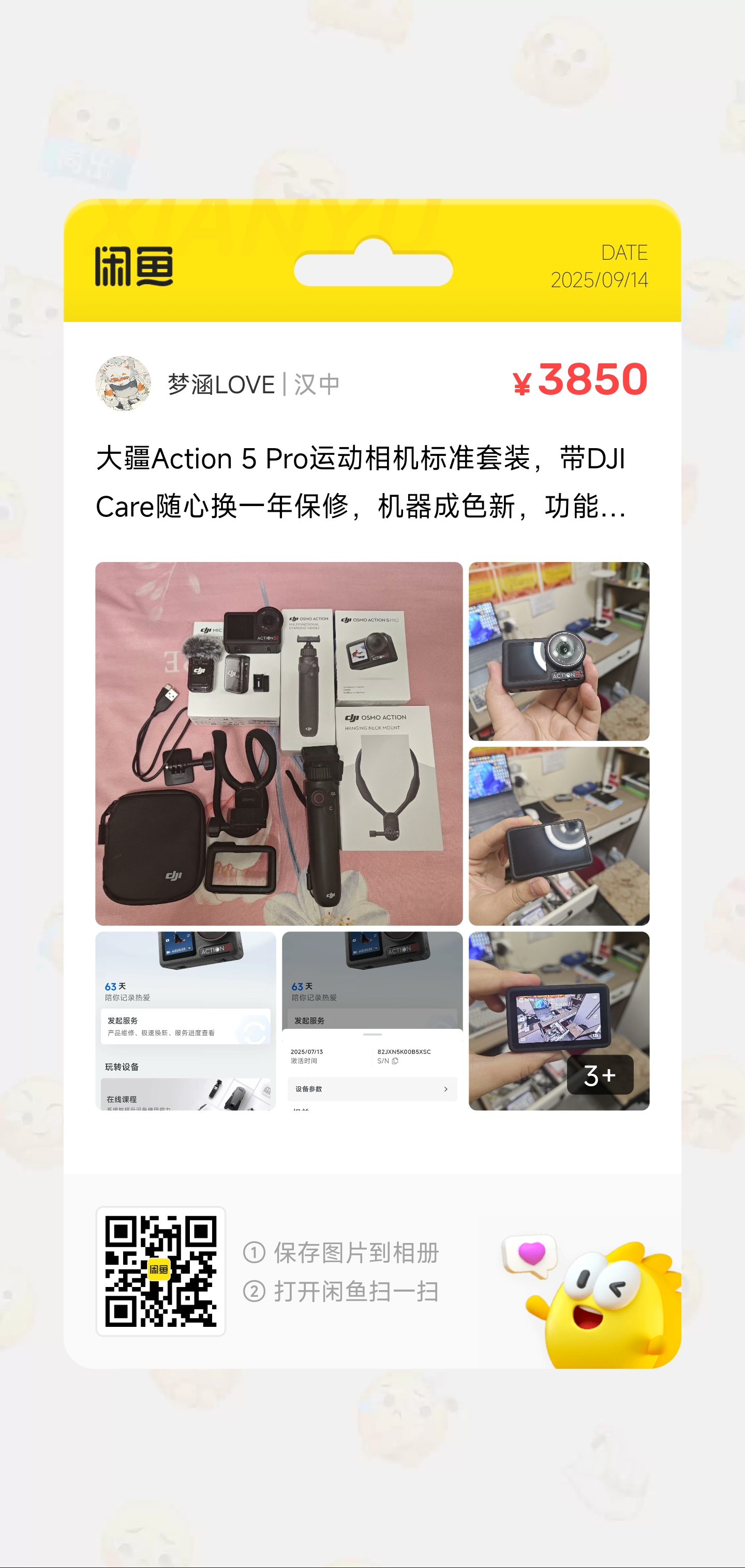 2025年9月14日 把 大疆Action5Pro挂闲鱼了,想换影石Ace2Pro