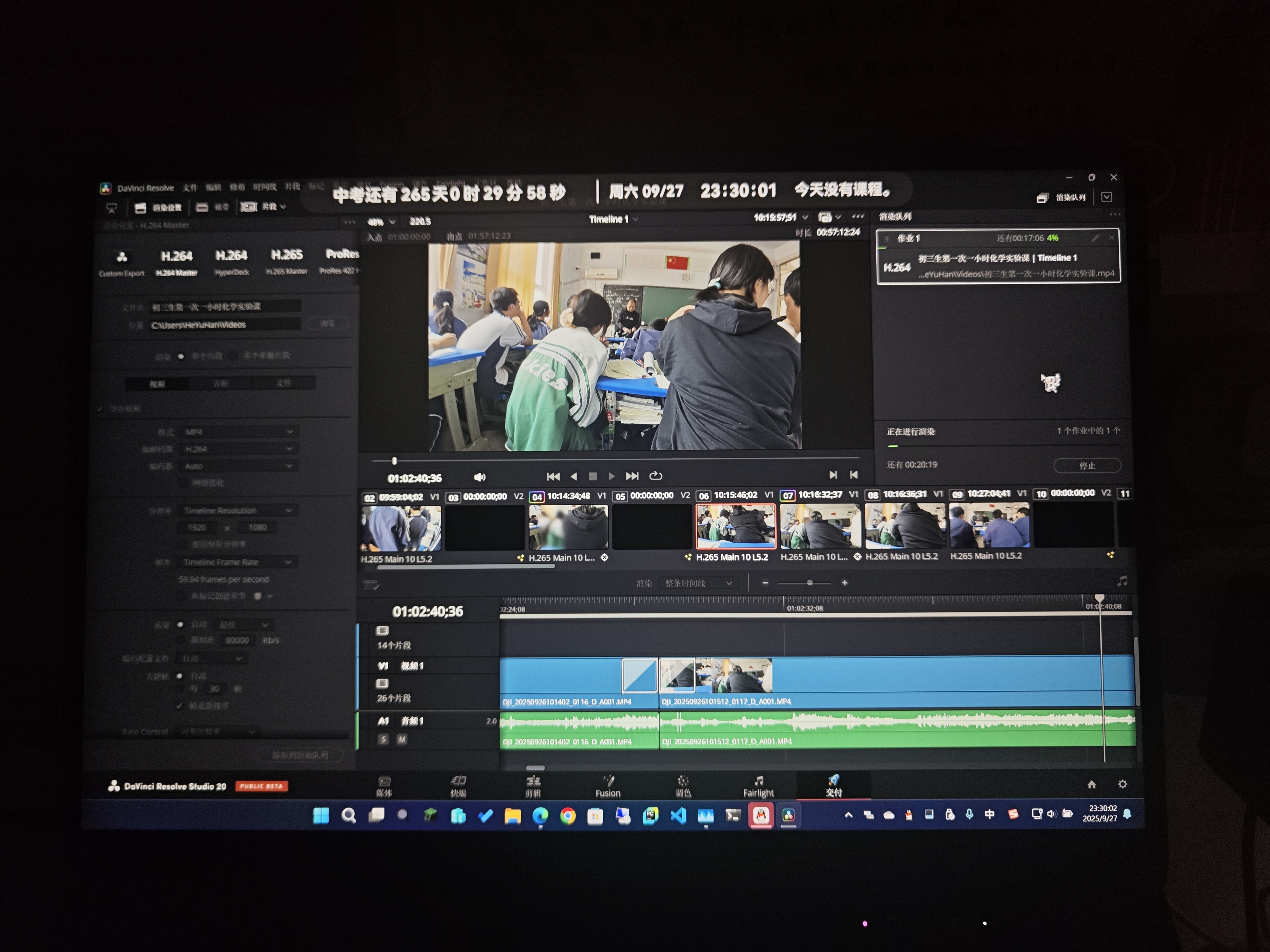 2025年9月27日 剪辑周五早上在学校用Action5Pro拍摄下来的一小时时长的化学实验课
